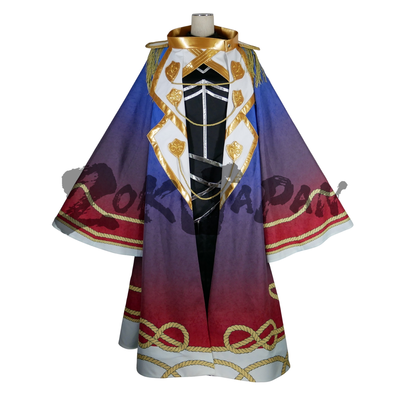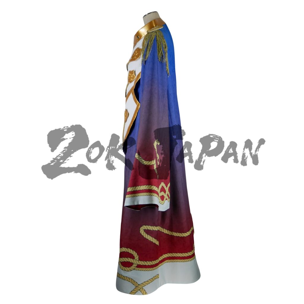 マントは広範囲にデジタルプリント生地を使用し、背面の模様など不明な部分はアレンジして作りました。