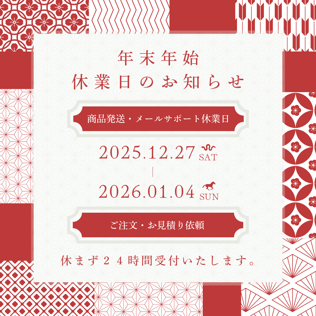 年末年始休業日:2025年12月27日(土) 〜 2026年1月4日(日)